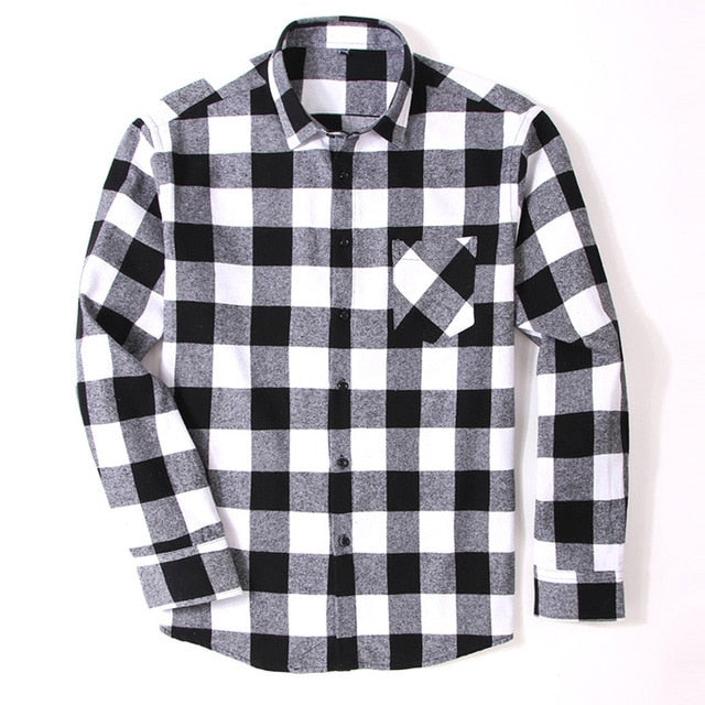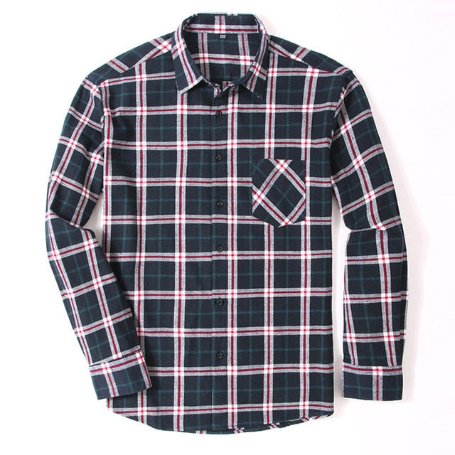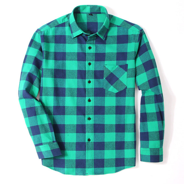 100% Cotton Flannel Men's Plaid Shirt Slim Fit Spring Autumn Male Brand Casual Long Sleeved Shirts Soft Comfortable 4XL